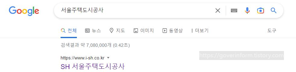 구글 검색창에 서울주택도시공사를 입력하고 검색하면 서울주택도시공사 url(https://www.i-sh.co.kr/main/index.do)이 나옵니다. 여기에 접근하면 서울주택도시공사 홈페이지 이용 가능합니다.