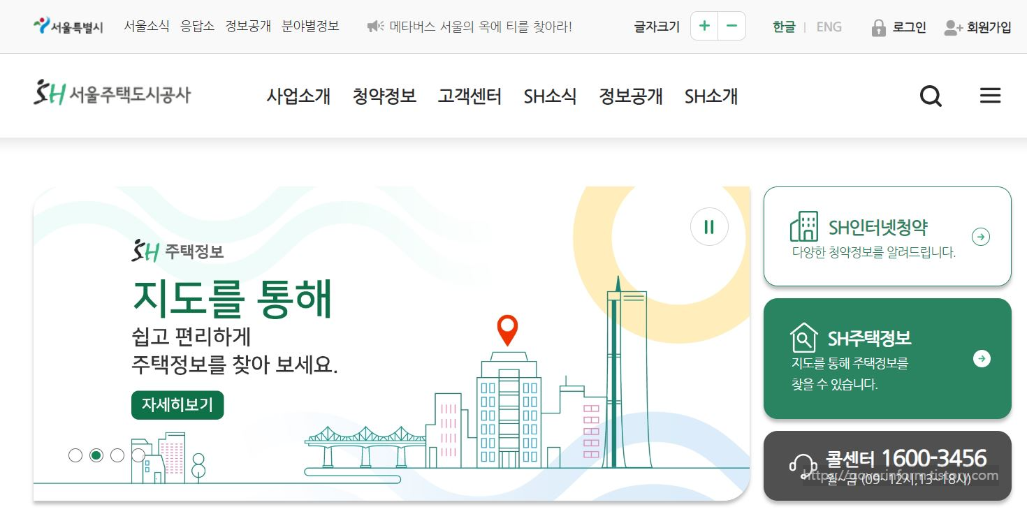 서울주택도시공사 홈페이지에는 사업소개 청약정보 고객센터 SH소식 정보공개 SH소개 SH인터넷청약 SH주택정보 콜센터 공고 및 공지 공급계획 당첨자 발표 서류심사 대상자 조회 납부금 조회 보수처리 조회 온라인 신청이 있습니다.