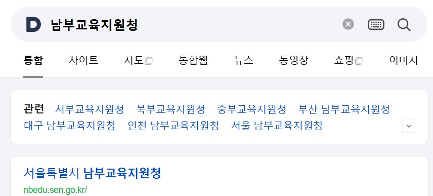 네이버, 다음, 구글 등 평소 이용하는 홈페이지 검색창에 '남부교육지원청'을 입력하거나 아래 링크를 이용해서 접근하면 된다.