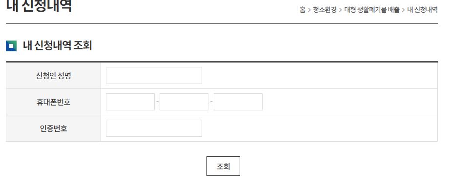 대형생활폐기물 수거 신청 후 서울중구청 홈페이지> 청소환경 메뉴에서 내 신청 내역 확인이 가능하다.
