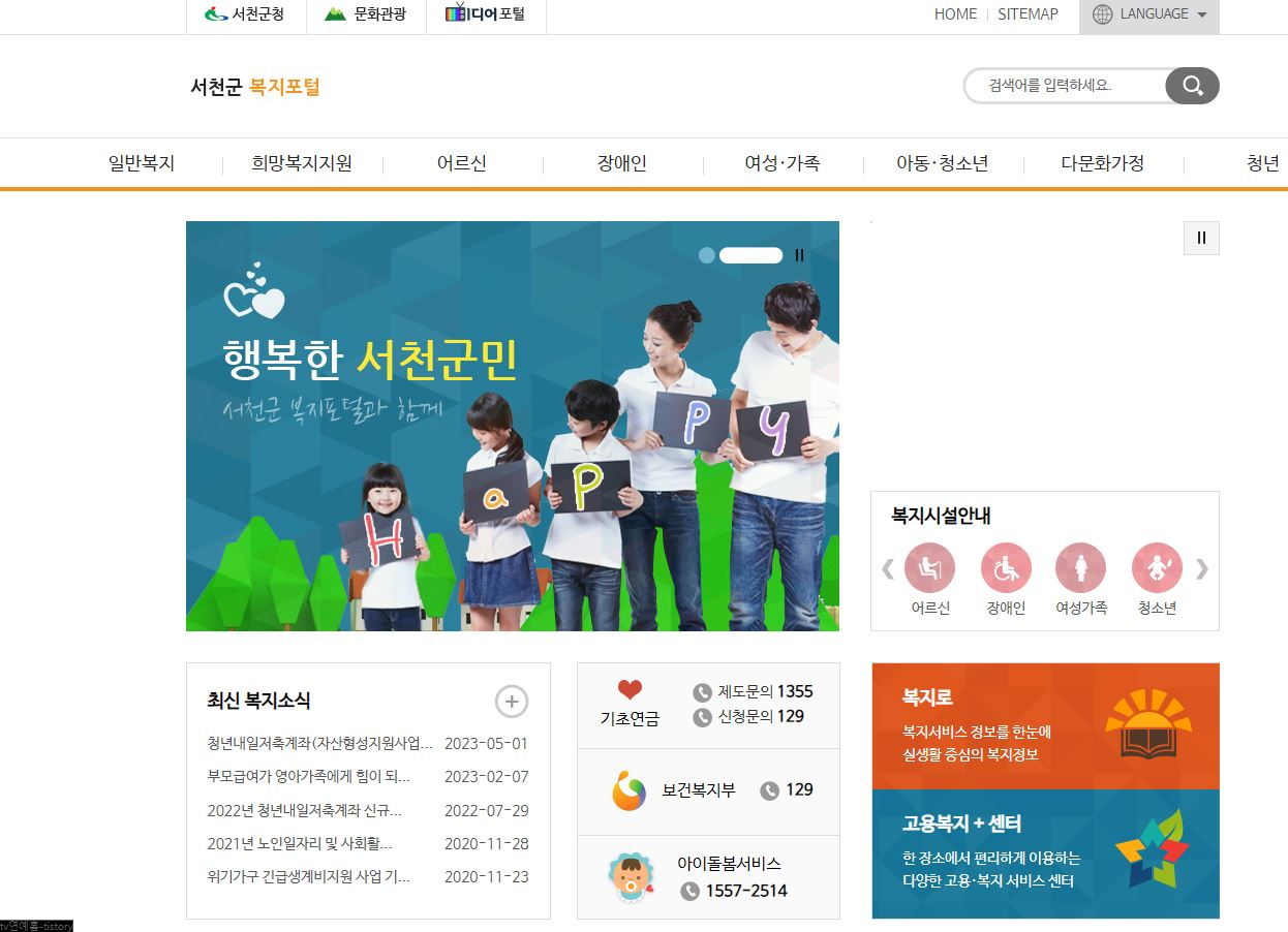 서천군 복지포털 홈페이지 바로가기
