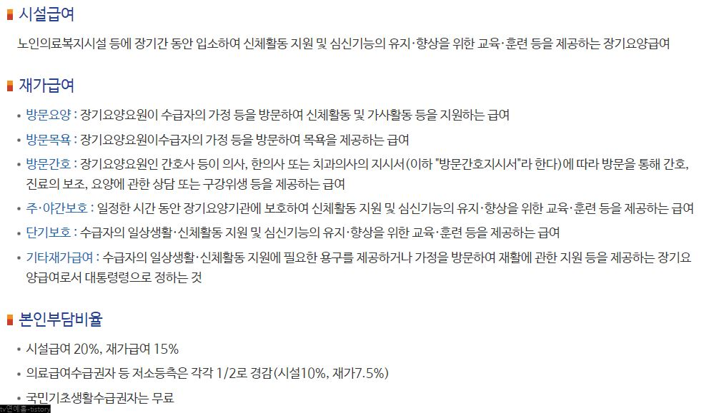 장기요양서비스 급여내용
