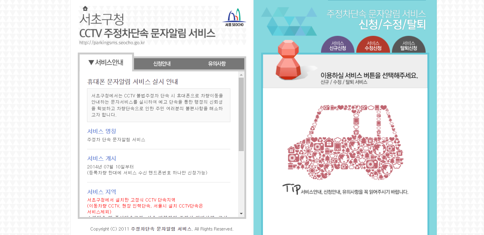 Copyright (C) 2011 주정차단속 문자알림 서비스. All Rights Reserved.