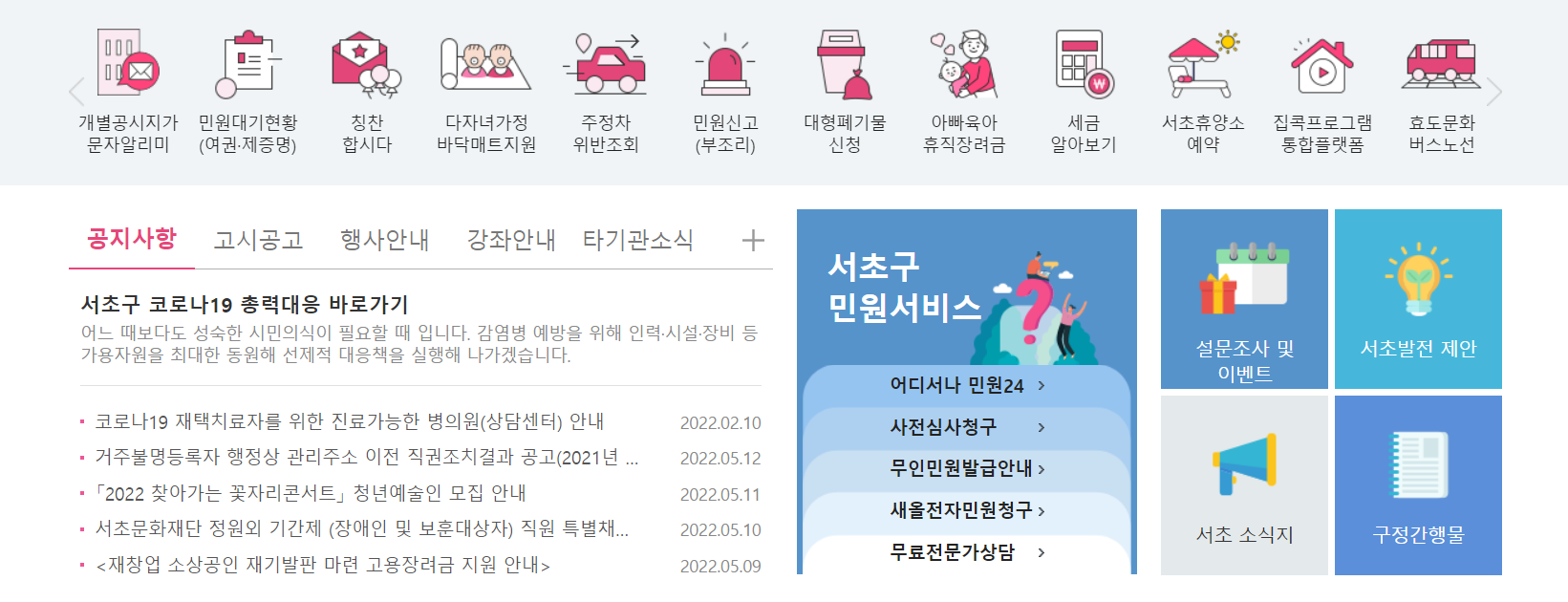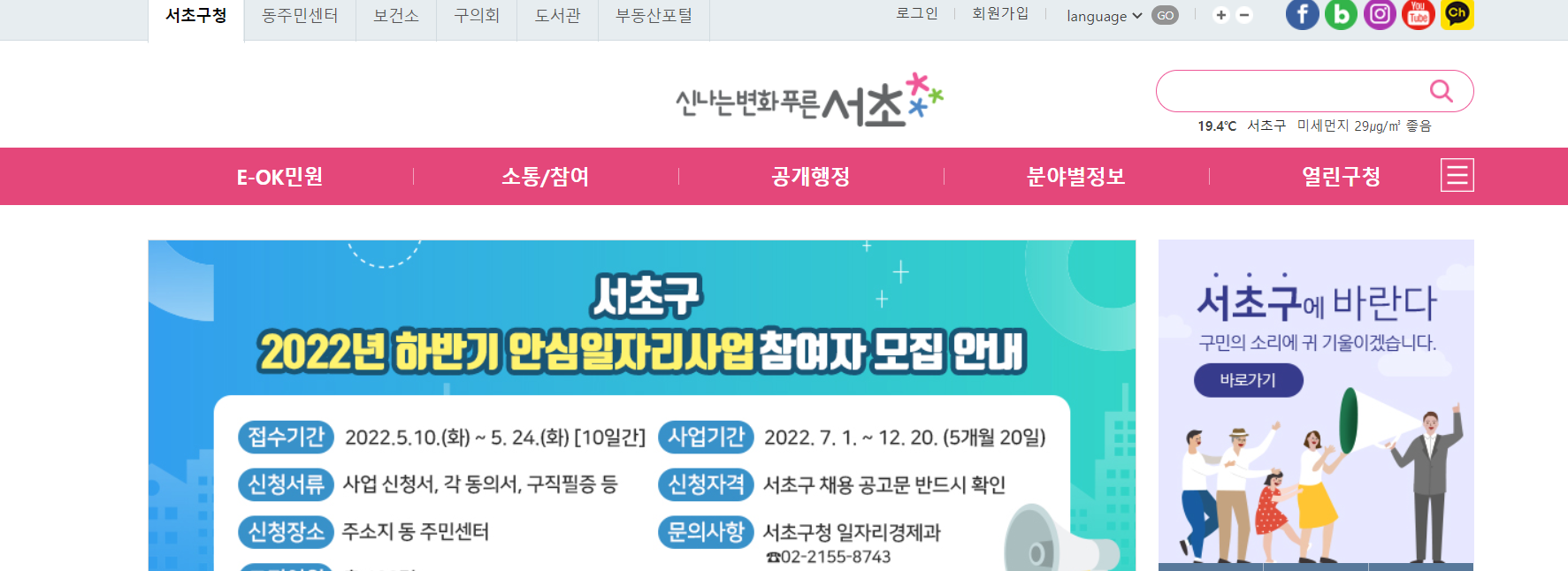 1. 먼저 서초구청 홈페이지에 접속합니다. (https://www.seocho.go.kr/site/seocho/main.do)