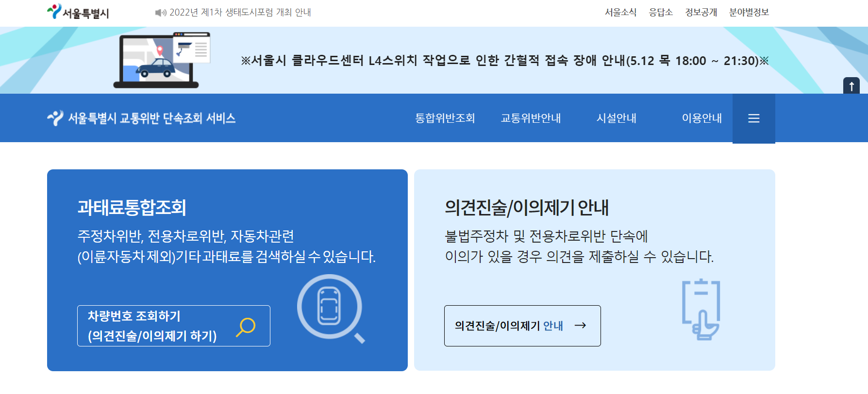 서초구청 주정차 위반조회 문자신청