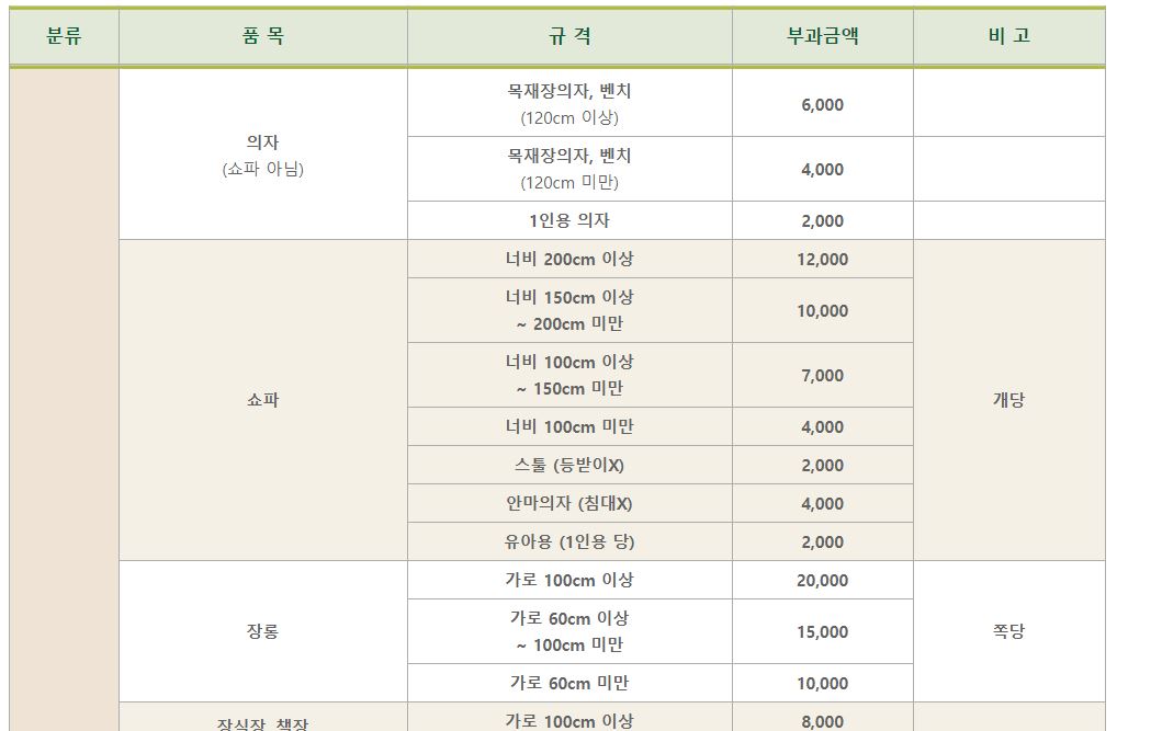 아래와 같이 대형폐기물 종류에 따라 처리방법에 대한 자세한 안내가 있습니다.