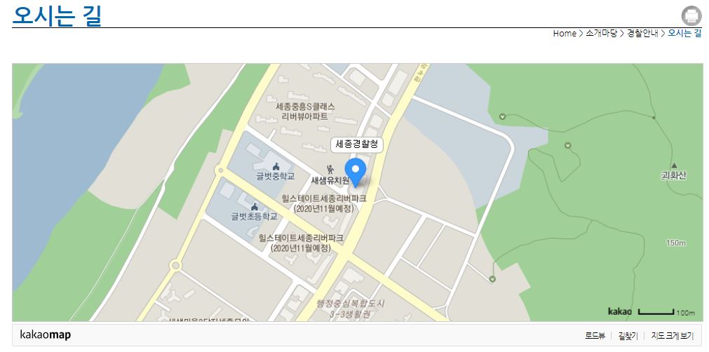세종경찰청 위치는 아래와 같으며 버스 이용 시 급행 BRT, 급행, 지선으로 올 수 있습니다.