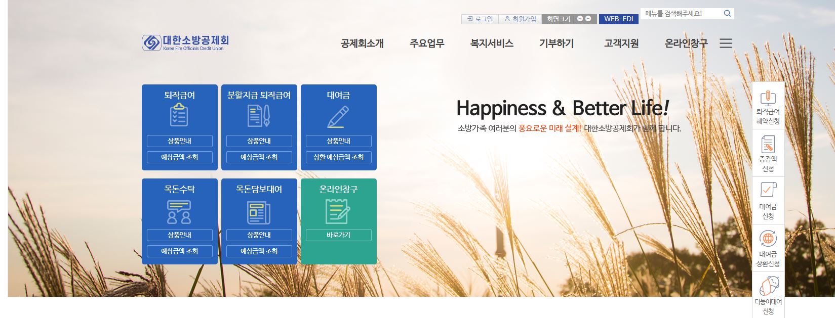 소방공무원의 혜택이 부러워질만큼 혜택이 많은 소방공제회 홈페이지입니다. 방문하시면 나에게 유용한 정보 또는 내가 필요했던 정보를 볼 수 있을것입니다. 행복한 하루 보내세요.