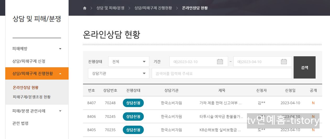신청 후 신청 현황에 대해서도 소비자 24 홈페이지에서 확인할 수 있습니다.