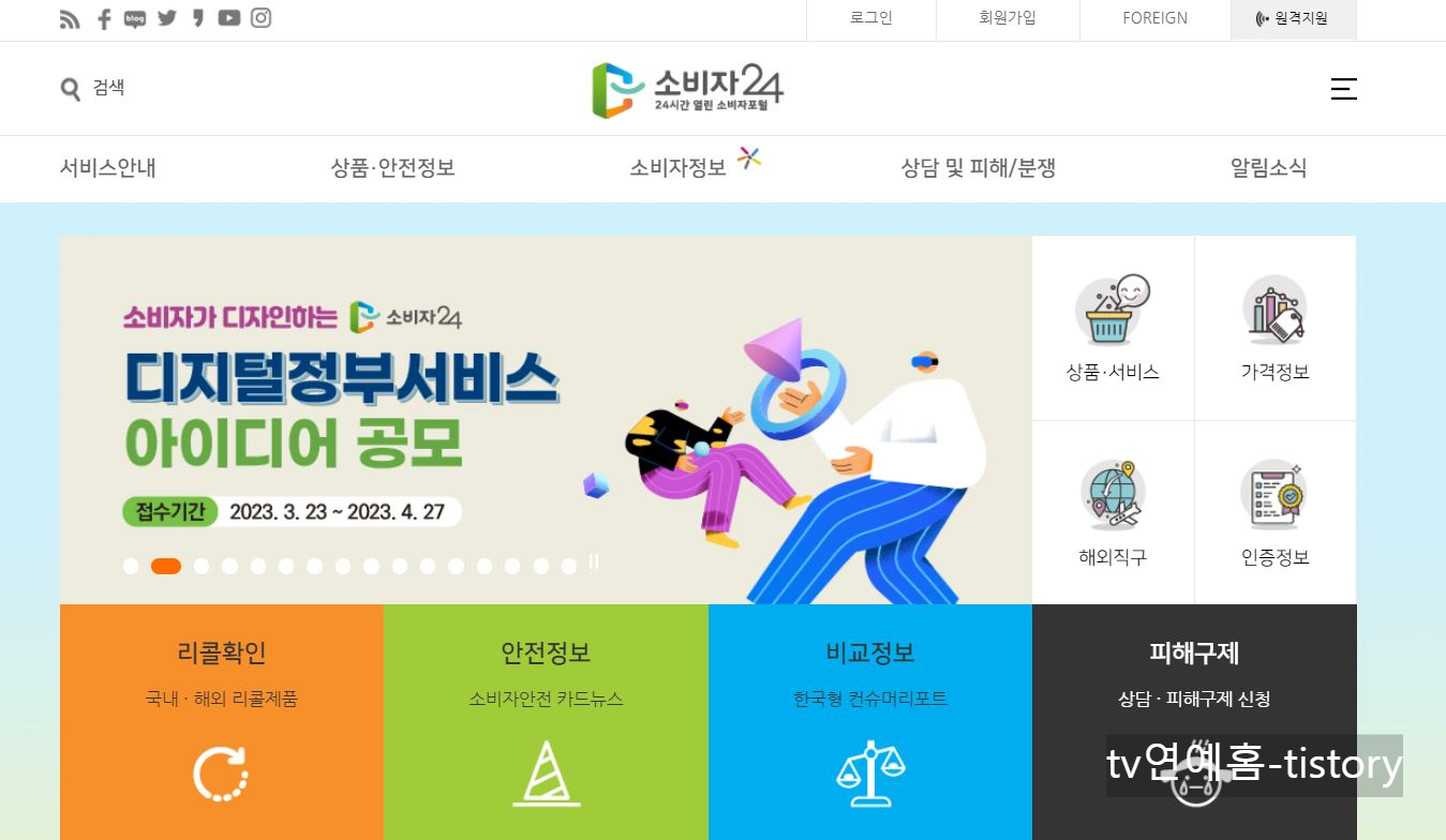 구글이나 평소 자주 이용하는 포털 검색창에 소비자 24를 입력하고 검색하면 소비자 24 홈페이지가 나옵니다.