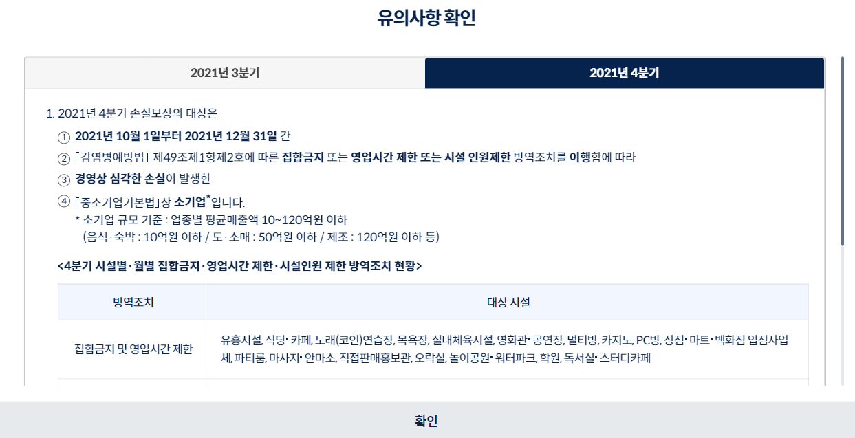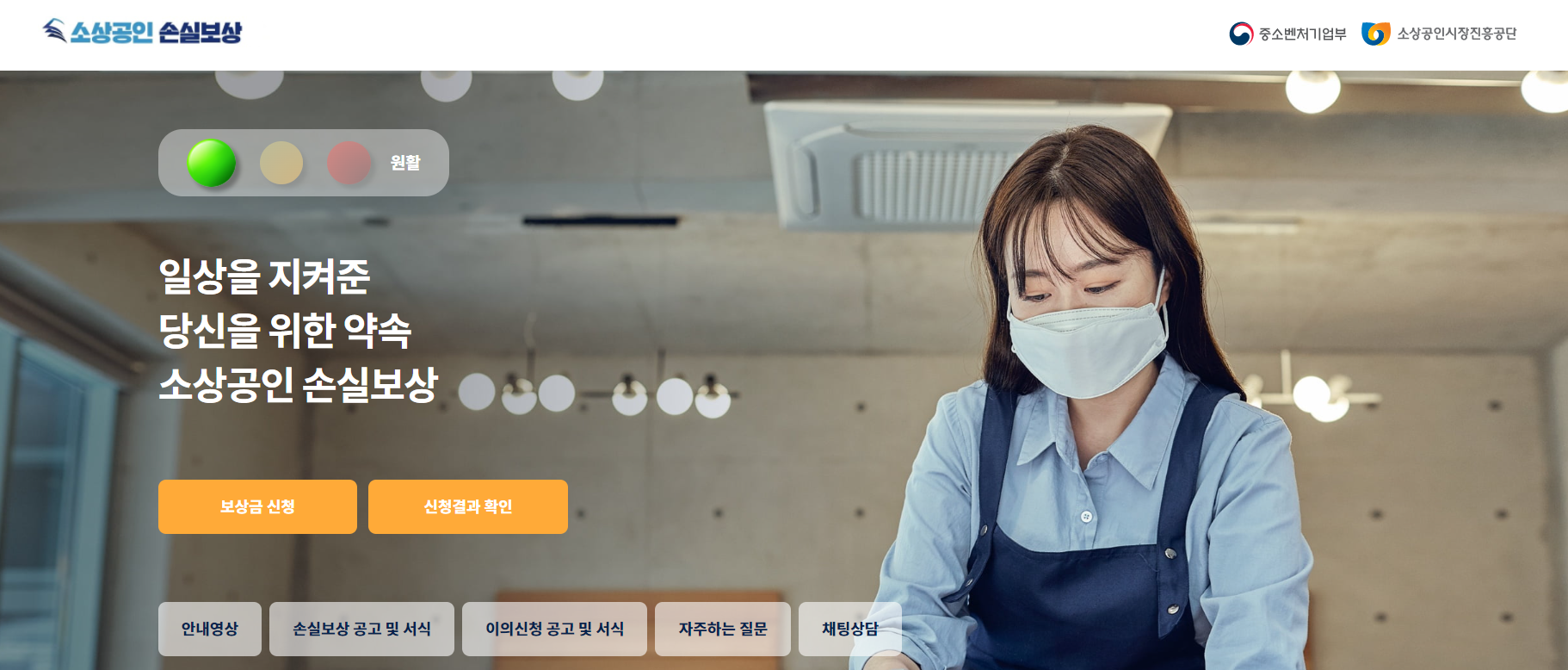 손실보상금 신청을 위해 만들어진 홈페이지인만큼 깔끔하게 되어있습니다.