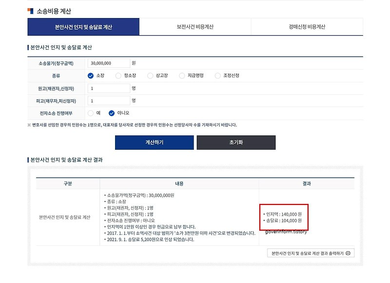 소송비용 자동 계산기 활용
