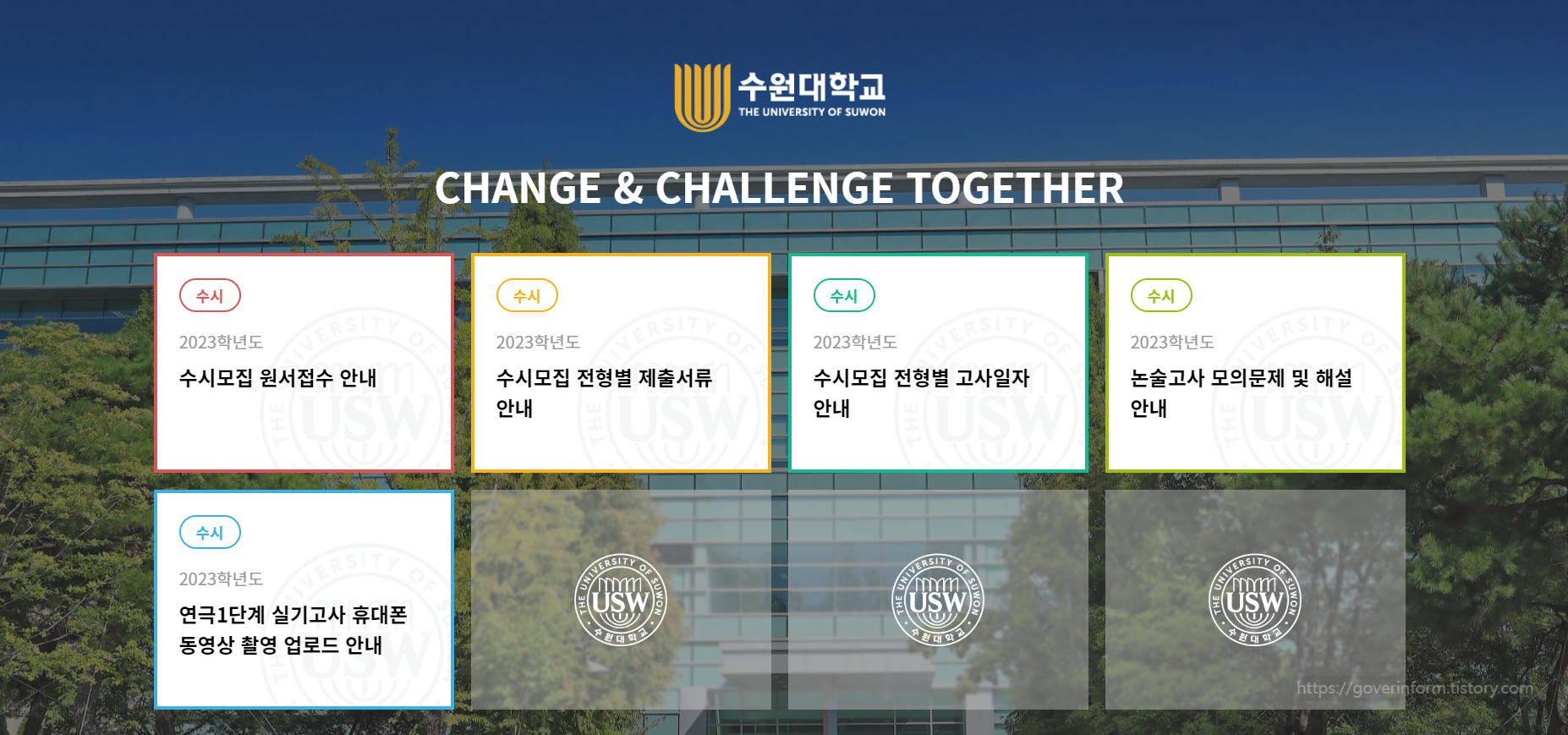 수원대 입학처 홈페이지 바로가기=>https://ipsi.suwon.ac.kr/main