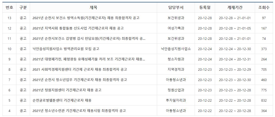 순천시청 홈페이지에서는 인사채용에 대한 정보가 있습니다.