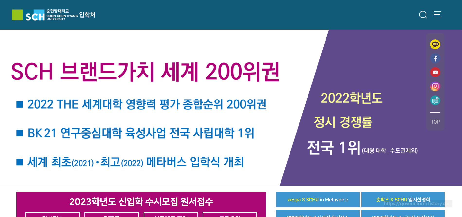 순천향대 입학처 홈페이지 바로가기
