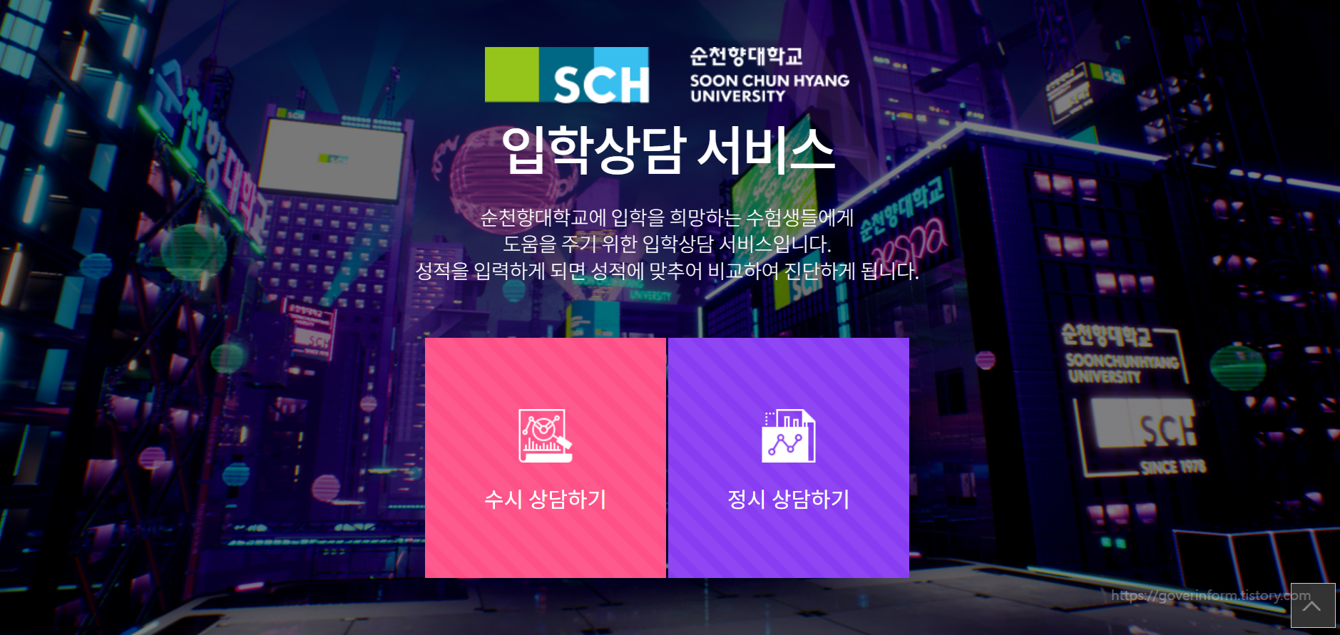 순천향대 입학처 홈페이지 바로가기-)http://ipsi.sch.ac.kr/main.do