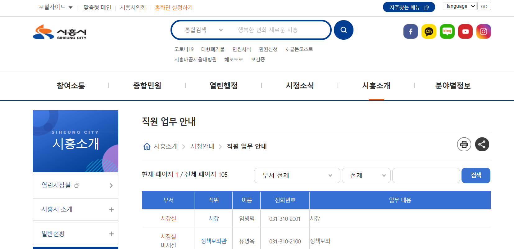 바쁜 직장인 나이가 많은 어르신 거동이 불편한 분들 그리고 코로나 시기이기에 많은 분들이 직접 찾아가기보다는 전화로 해결하는 것이 나을 것입니다. 시흥시청에는 아래와 같은 부서가 있습니다.