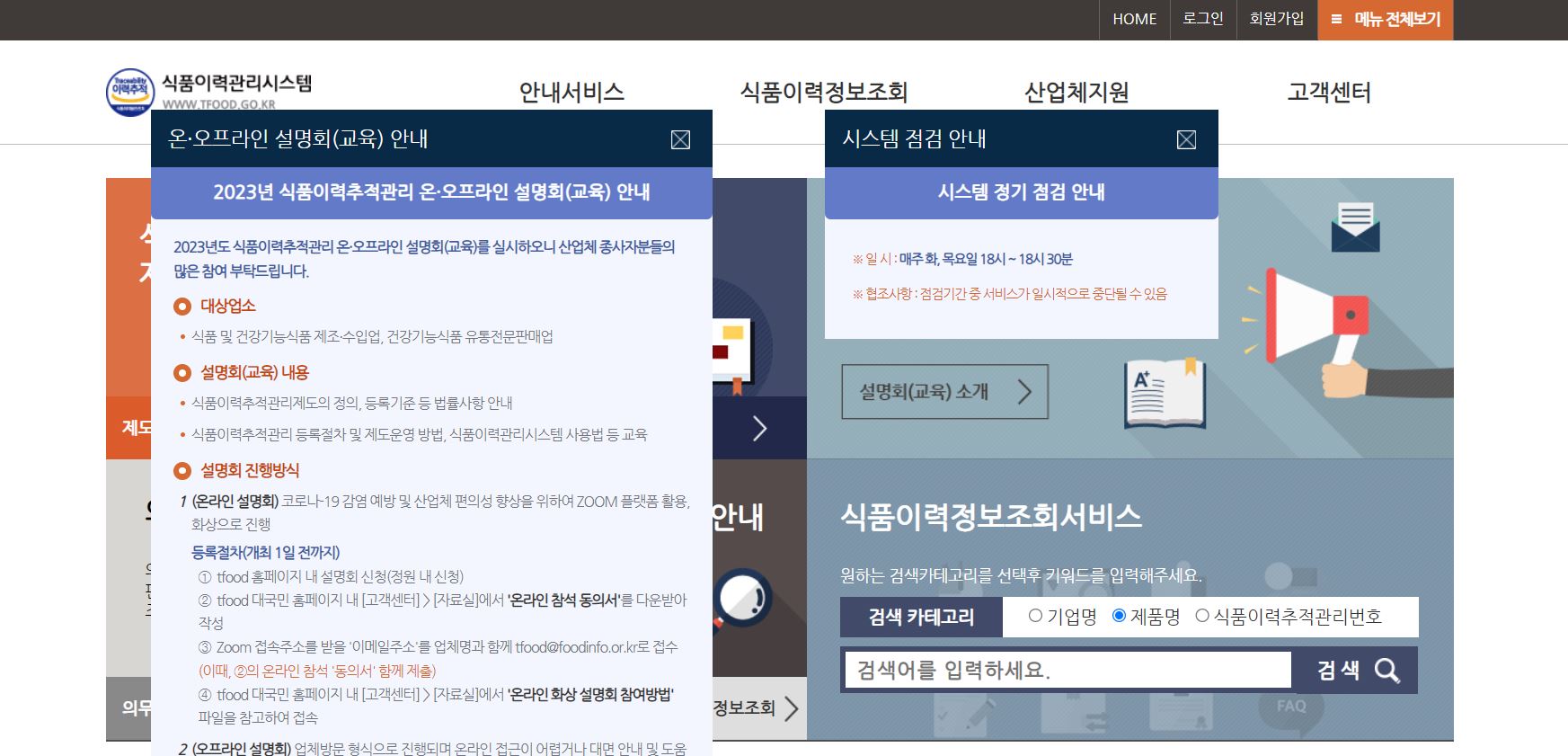 식품이력관리시스템 홈페이지 바로가기