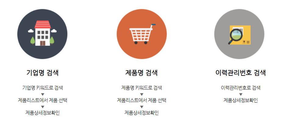 유통 및 소비기한이 1년이상 지난 제품은 검색이 불가하며 각 키워드별 검색방법을 참고하면 편리하게 이용 가능합니다.