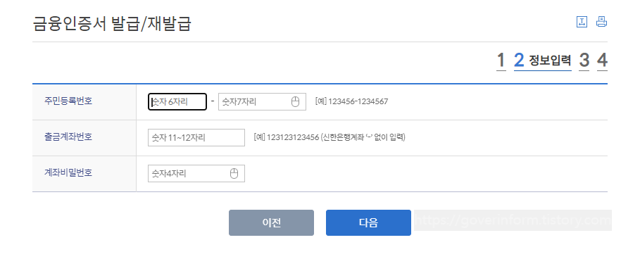정보입력창은 주민등록번호, 계좌출금번호, 계좌비밀번호를 설정해야합니다. 인터넷뱅킹이용을 위한거라 보안이 잘 되어있어 걱정없이 이용해도 됩니다.