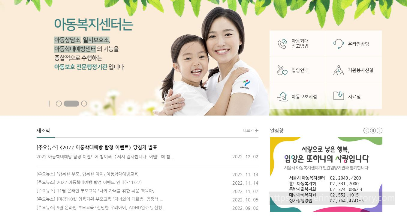 검색할 수 있는 사이트인 구글에서 아동복지센터를 검색하면 바로 url이 나오는데 여기(https://child.seoul.go.kr/)에 접근하면 홈페이지에 바로 이용을 할 수 있다.