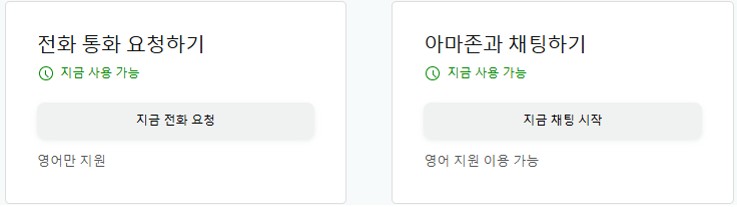 4) 전화 통화 요청하기 또는 아마존과 채팅하기를 선택합니다. 두 가지 방법 모두 빠르게 고객센터를 이용할 수 있는 방법입니다.
