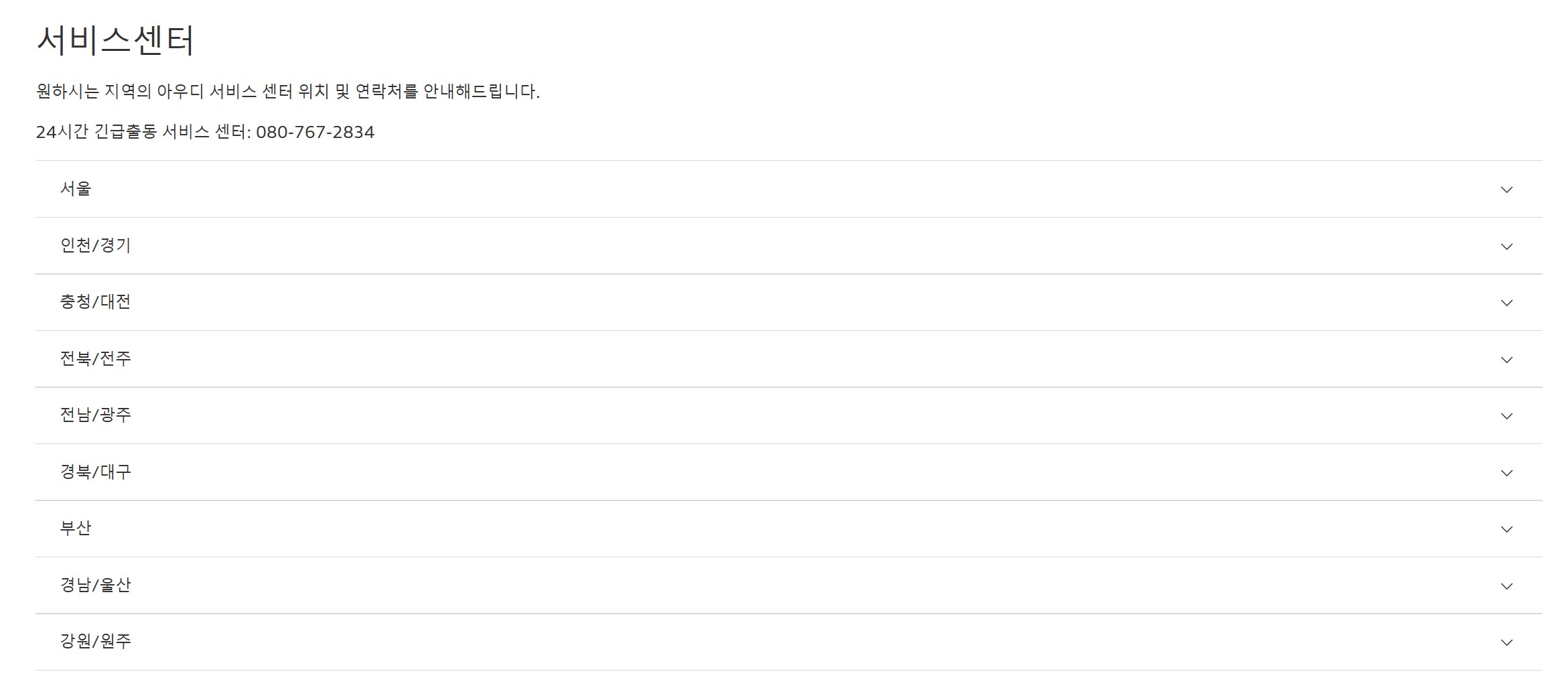 서비스 센터를 검색하고 싶다면 "여기"에서 원하는 지역의 서비스 센터 위치와 연락처를 확인할 수 있습니다.