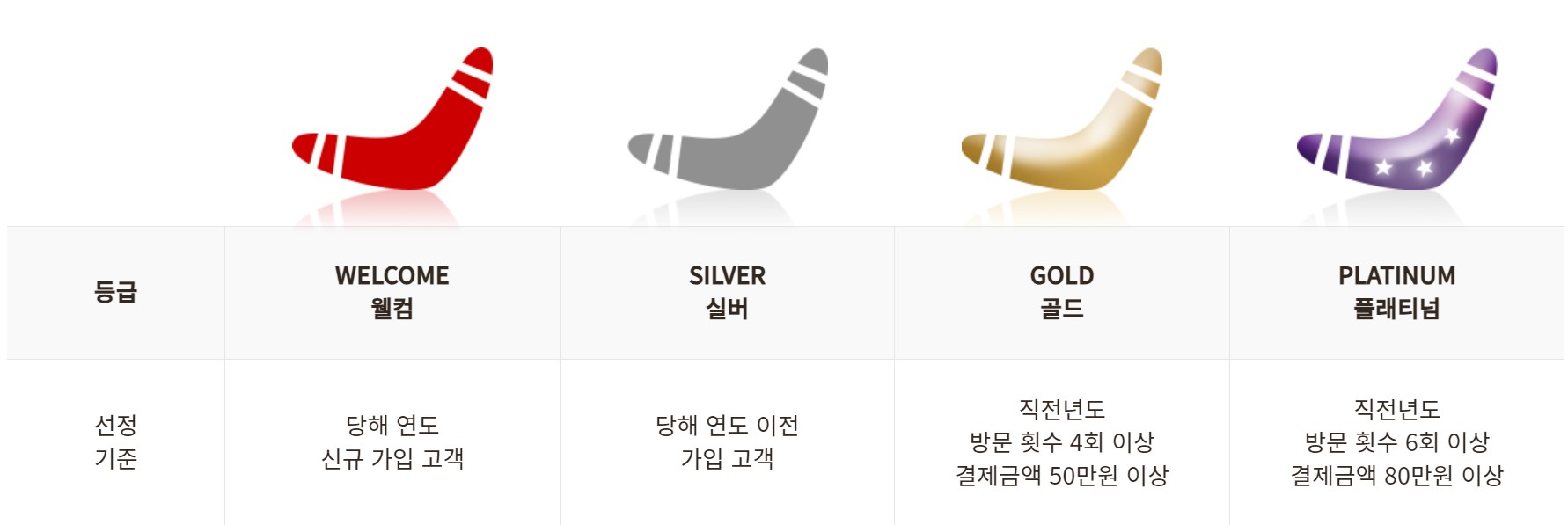 웰컴/실버/골드/플래티넘 기본 혜택