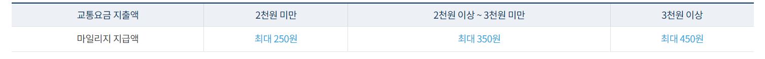 알뜰교통카드이용 시 마일리지 적립은 다음과 같은 조건이 성립되어야 합니다. 월 15회 이상 대중교통 이용, 앱 신청은 서울, 인천, 경기, 부산, 대구, 대전, 광주, 세종, 울산, 제주, 충북, 충남, 전북, 전남, 경남, 강원에서 이용 가능, 신청 후 이용은 전국에서 가능합니다. (동해는 일부 제한) 회당 마일리지는 보행, 자전거는 최대 800m 이동시 월 상한 44회이며 800m 미만은 이동거리에 비례하여 적용합니다. 월 15회 이상 대중교통 이용 시 적용하며 미세먼지 저감조치 발령 시에는 두 배 제공합니다.