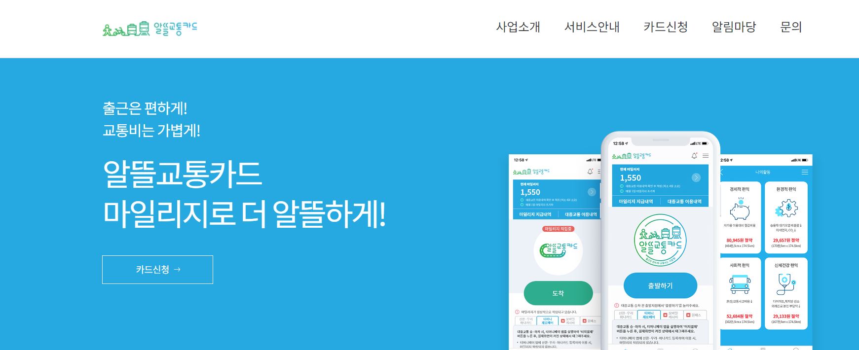 알뜰교통카드는 대중교통을 이용하기 위해 걷거나 자전거로 이동한 거리만큼 마일리지를 적립하여 적용하고 카드사 할인혜택까지 적용하여 교통비를 절감하는 교통카드입니다.