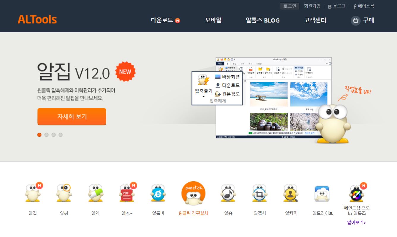 알툴즈는 이스트소프트에서 제공하는 서비스로 알집을 포함한 다양한 서비스를 제공하고 있습니다.