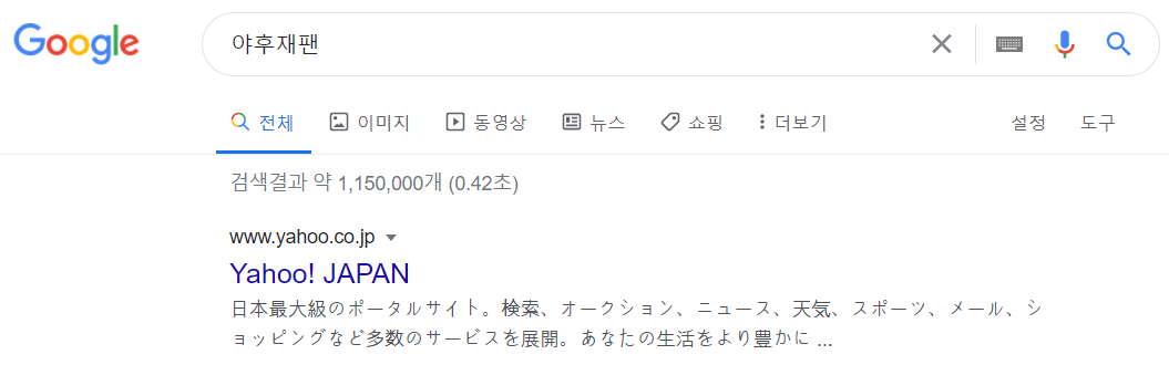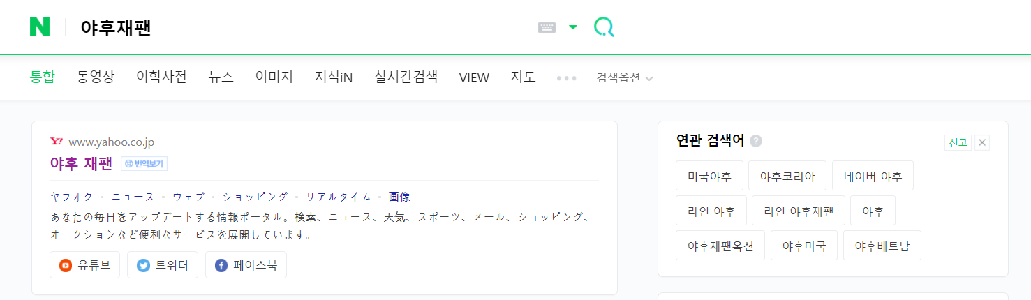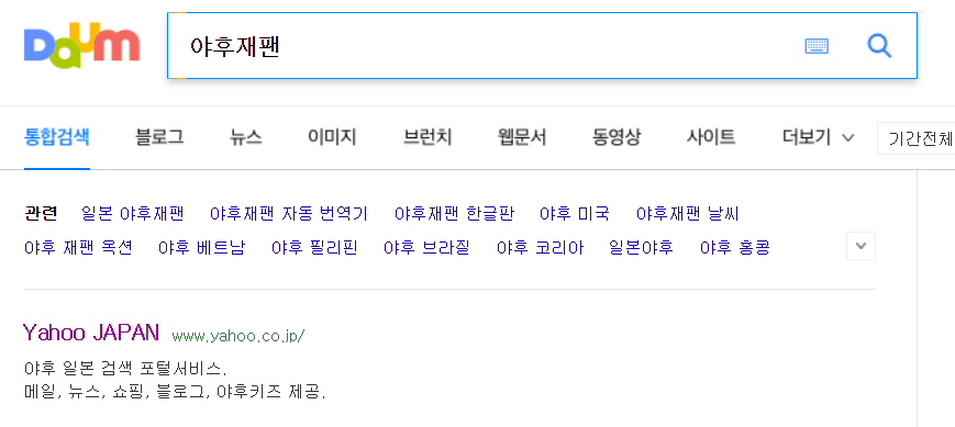 평소 자주이용사는 포털사이트 검색창에 야후재팬을 입력하면 아래와 같이 야후재팬 주소가 나옵니다. 직접 검색하면 바로 상단에 주소가 나오기도하고 아래 링크를 이용하셔도 됩니다. 편한방법으로 이용하시면 됩니다.