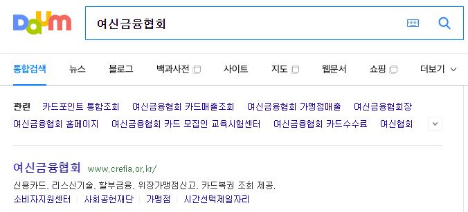 홈페이지 접속을 하려면 포털사이트에 여신금융협회를 검색하면 상단에 주소가 나옵니다.