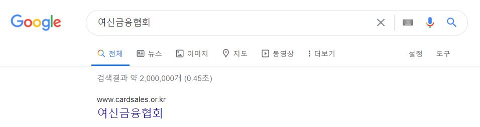 홈페이지 접속을 하려면 포털사이트에 여신금융협회를 검색하면 상단에 주소가 나옵니다.