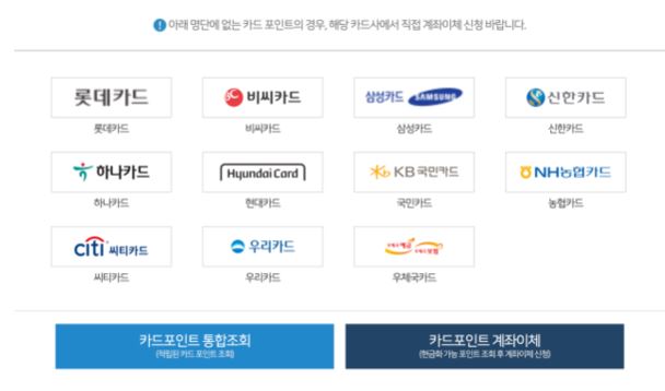 이곳에서는 여러 카드사에 흩어져 있는 카드포인트를 한꺼번에 조회할 수 있으며 포인트를 현금으로 전환할 수도 있습니다.