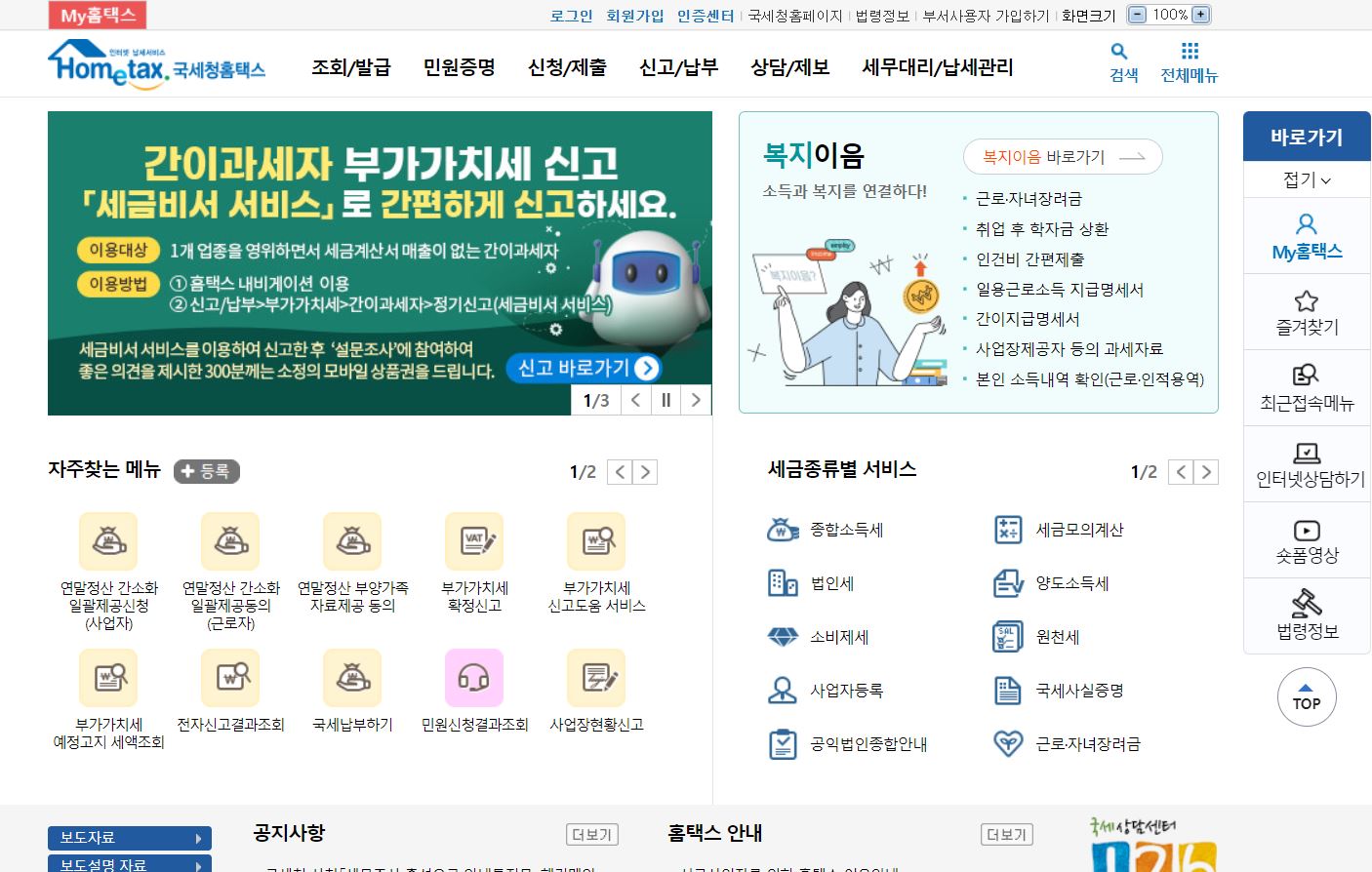 부가가치세 신고, 사업자현황 신고, 전자세금서발급 등에 관한 건 국세청 홈택스를 이용하면 됩니다.