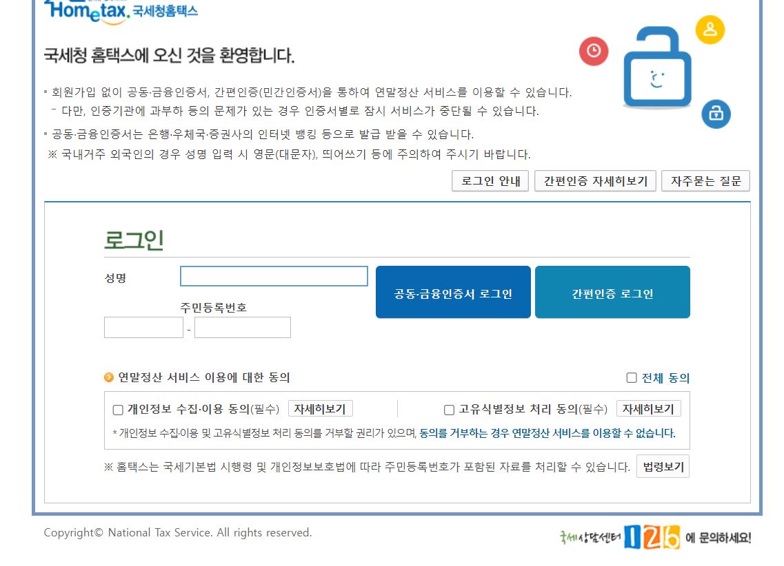 연말정산은 연말정산간소화 서비스 바로가기에서 이용하면 됩니다. 바로가기