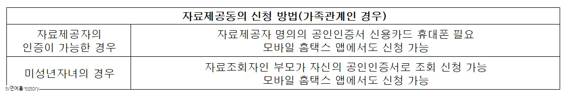 자료제공동의 신청 방법 (가족관계가 아닌 경우)