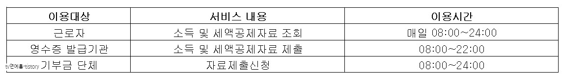 여기에서는 연말정산 간소화 서비스 바로가기와 연말정산 간소화 서비스 이용절차(이용방법 및 이용시간, 제공 서비스 목록 등) 에 대해 알려 드립니다.
