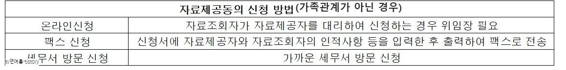 - (온라인신청) 자료조회자가 자료제공자를 대리하여 신청하는 경우 위임장이 필요합니다.