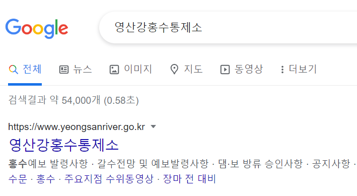 아래는 영산강홍수통제소 홈페이지입니다. 포털검색창에 검색해도 되고 아래 url을 첨부했으니 바로 이용해도 됩니다.