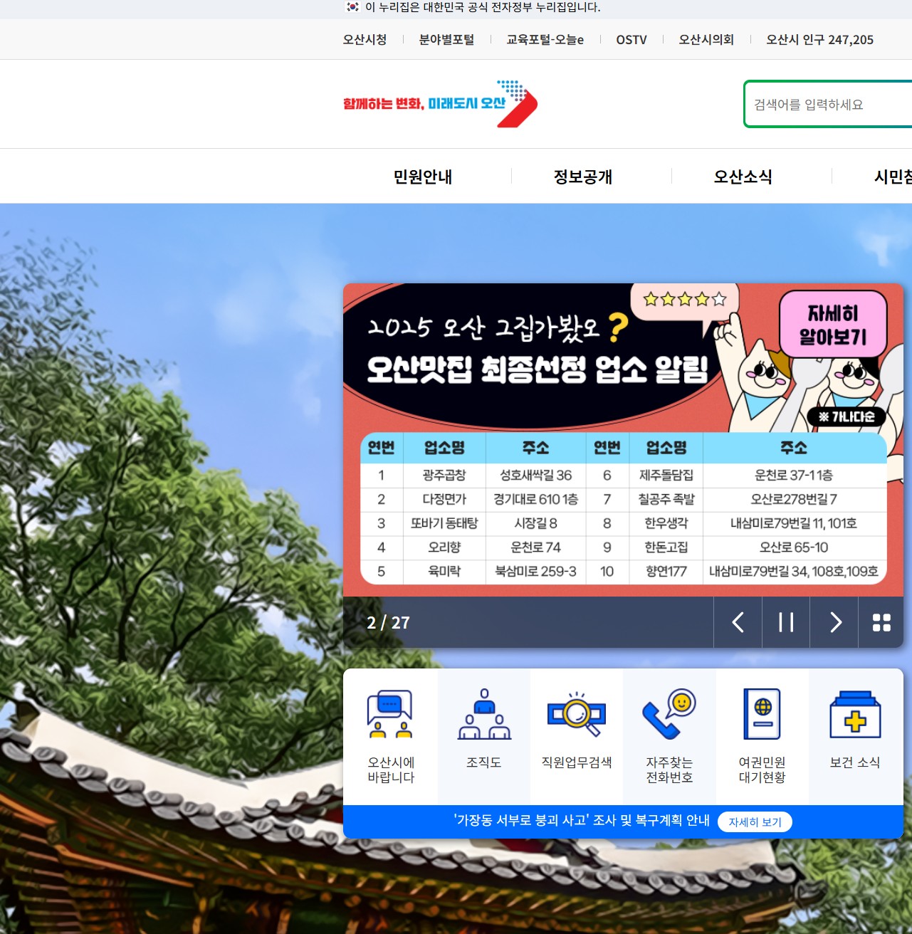 오산시청 홈페이지에서 다양한 서비스를 이용할 수 있다.