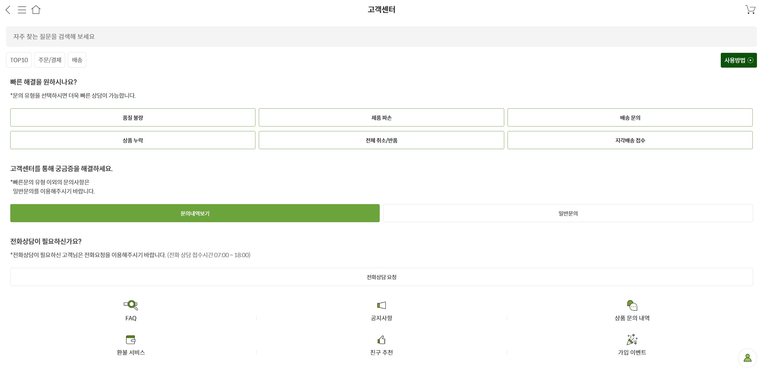 고객센터 전화번호 외에도 이용할 수 있는 방법은?