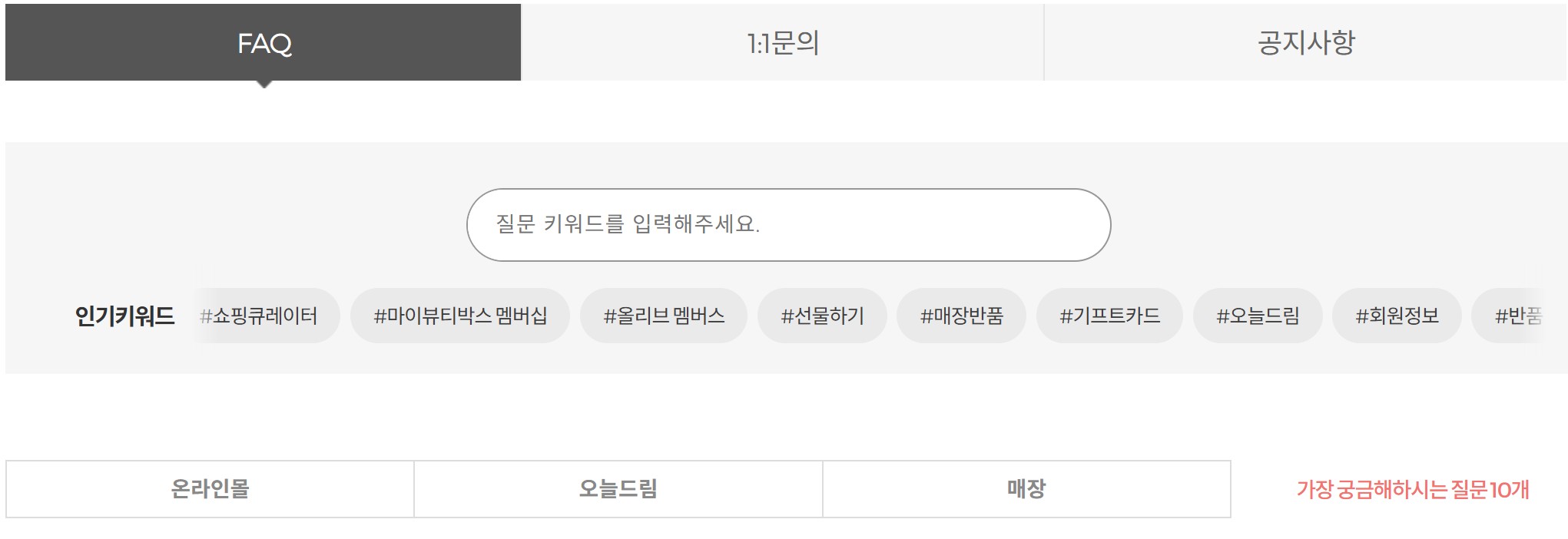 올리브영 홈페이지에서 1:1 문의나 FAQ를 이용하면 보다 편리하게 언제든지 문의를 해결할 수 있습니다.
