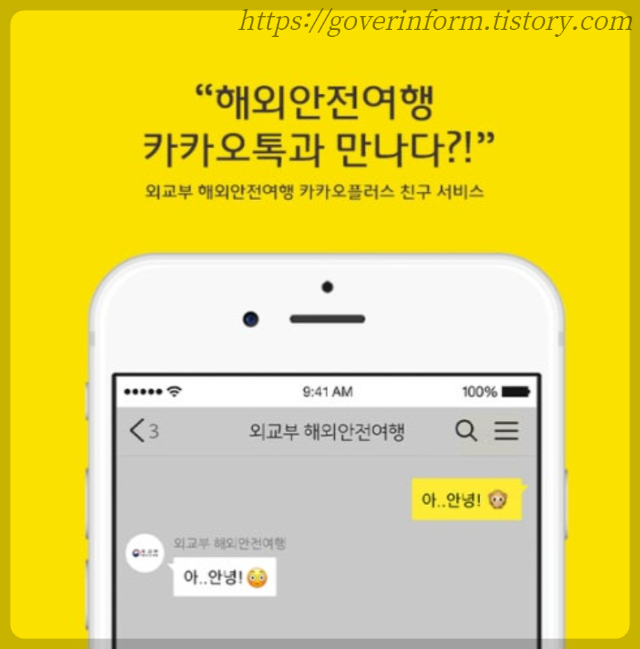 카카오톡 채널 ‘외교부’ 추가 시 실시간 채팅 상담 가능해요~^^