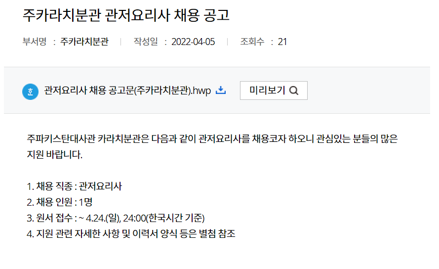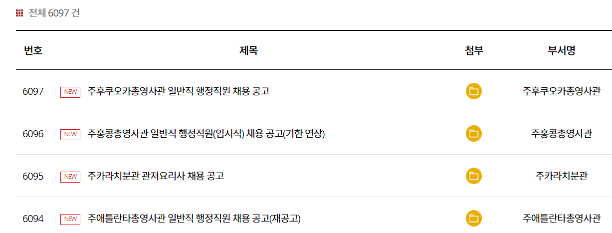 외교부의 채용공고는 아래처럼 게시판에 글이 올라오는 형식으로 기재됩니다.