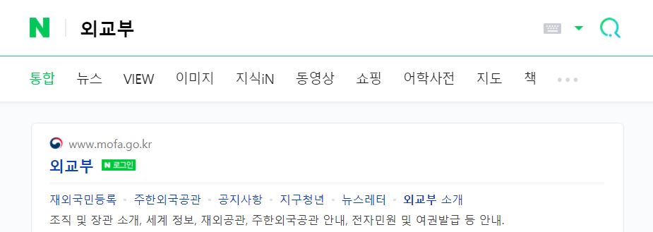 평소 이용하는 포털 검색창에 외교부를 입력하고 검색하면 상단에 외교부 홈페이지 주소가 나옵니다.