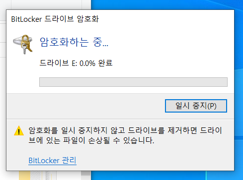 암호화하는중 이라는 문구가 적힌 창이 나오게 됩니다.