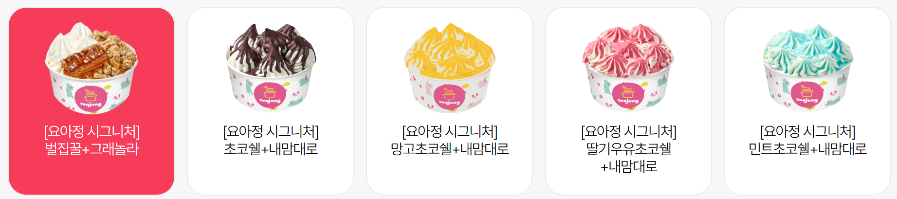 어떤 경우에는 어떻게 먹어야 좋을지 어려움을 느끼기도 합니다. 그럴 때는 요아정 시그니처를 선택하면 되는데요, 요아정 시그니처에는 벌집꿀 + 그래놀라 조합, 초코쉘 + 내 맘대로, 망고초코쉘 + 내 맘대로, 딸기우유초코쉘 + 내 맘대로, 민트초코쉘 + 내 맘대로 조합입니다. 고르는 게 정말 어렵다면 벌집꿀 + 그래놀라 조합을 추천드려요. 이렇게 주문하면 1인 기준 (요구르트아이스크림 150g) 약 12,500원이 나오게 됩니다. 여기에 토핑을 추가하면 토핑 금액만큼 추가가 되겠죠~?