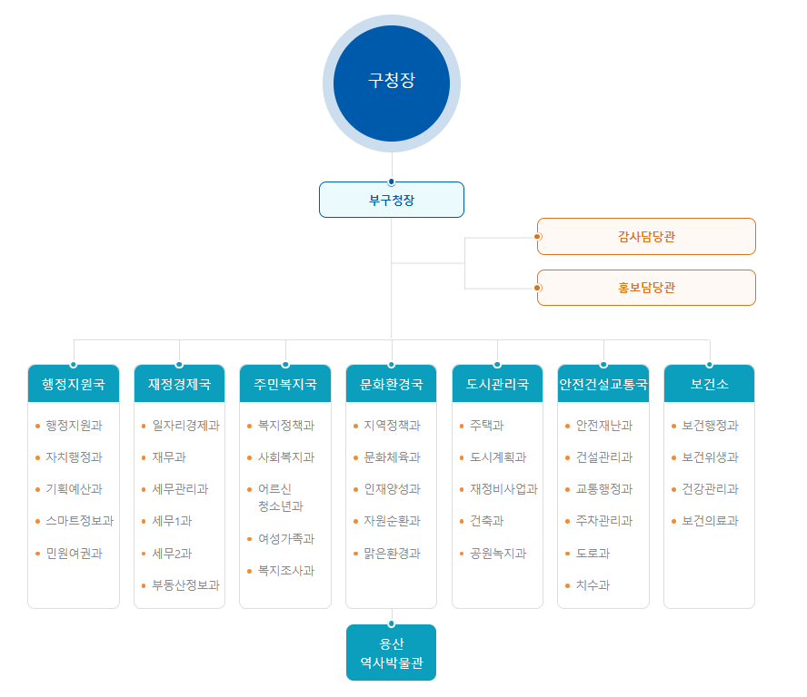 용산구청 홈페이지 바로가기 민원신청 조직도
